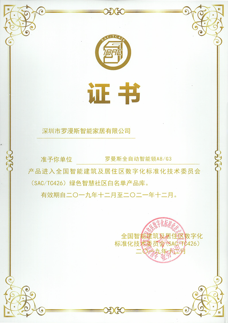 會上進行了綠色智慧社區產品白名單發布儀式,羅曼斯憑借在產品、技術上的領先優勢,A8和G3智能鎖成功入選“全國智標委綠色智慧社區產品白名單”。這份榮譽,既是行業專家、合作伙伴與大眾對羅曼斯的肯定與認可,也是羅斯產品實力的見證。
