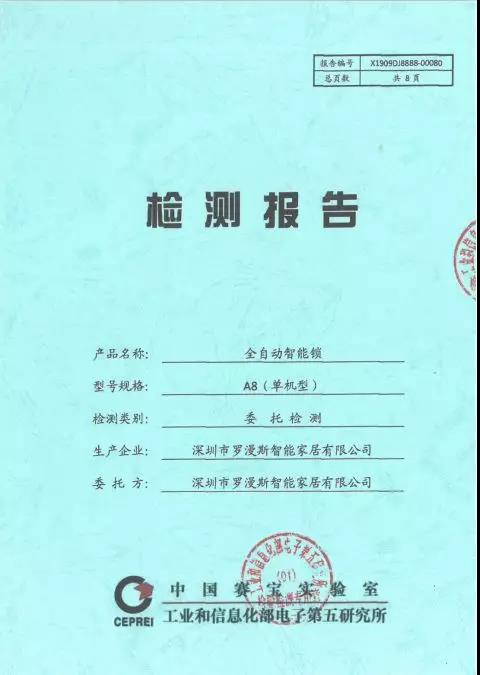 A8在做工方面突破了行業傳統的手法,在業內率先將與智能手機一樣的CNC工藝應用于智能鎖上,讓A8也能像智能鎖手機一樣擁有科技時尚的外觀。同時,羅曼斯A8還搭配業內造價較高的全鋼化玻璃,硬度達到了9H,耐磨性高于普通智能鎖。并通過中國賽寶實驗室檢測認證、公安部安全與警用電子質量檢測中心檢測認證。